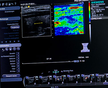 Mit unseren „High-End-Sonografiegeräten“ führen wir die Untersuchungen völlig schmerzfrei durch. Es erfordert keine besonderen Vorbereitungen und hat einen Zeitbedarf von 10-15 Minuten. Für die Untersuchung der Leber ist es vorteilhaft, die Untersuchung nüchtern oder 2-3 Stunden nach der letzten Mahlzeit zu planen.