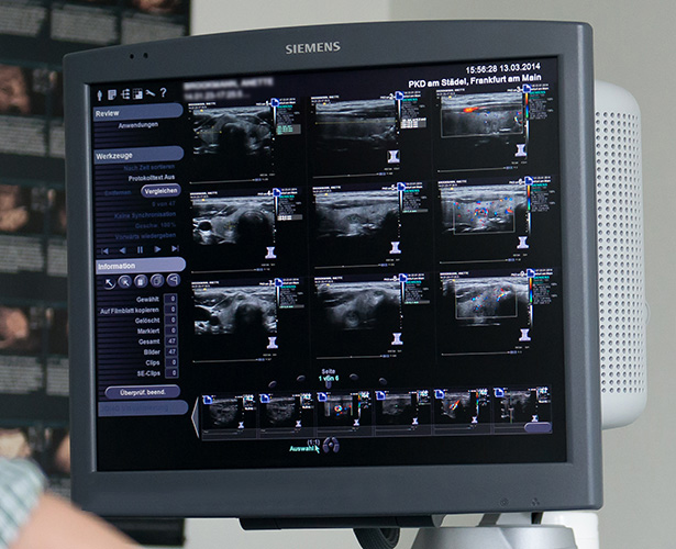 Mit unseren „High-End-Sonografiegeräten“ führen wir die Untersuchungen völlig schmerzfrei durch. Es erfordert keine besonderen Vorbereitungen und hat einen Zeitbedarf von 10-15 Minuten. Für die Untersuchung der Leber ist es vorteilhaft, die Untersuchung nüchtern oder 2-3 Stunden nach der letzten Mahlzeit zu planen.